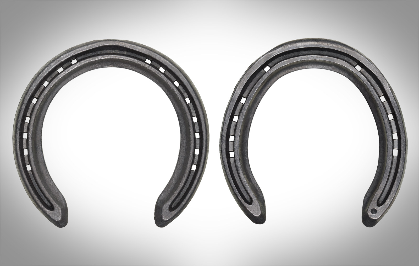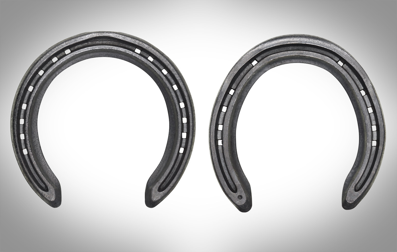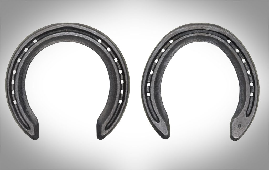 TRADITION HAS EVOLVED! Modern concave section horseshoe, with deep fullering and clear positive nail holes. Seated for sole relief with extra wide toe for strength and cover.