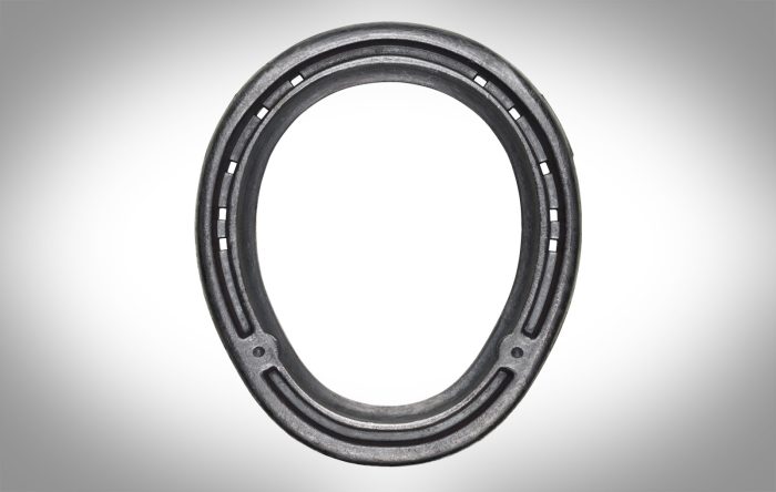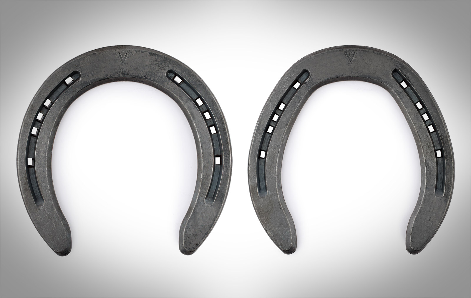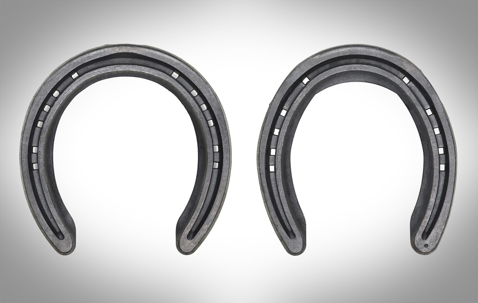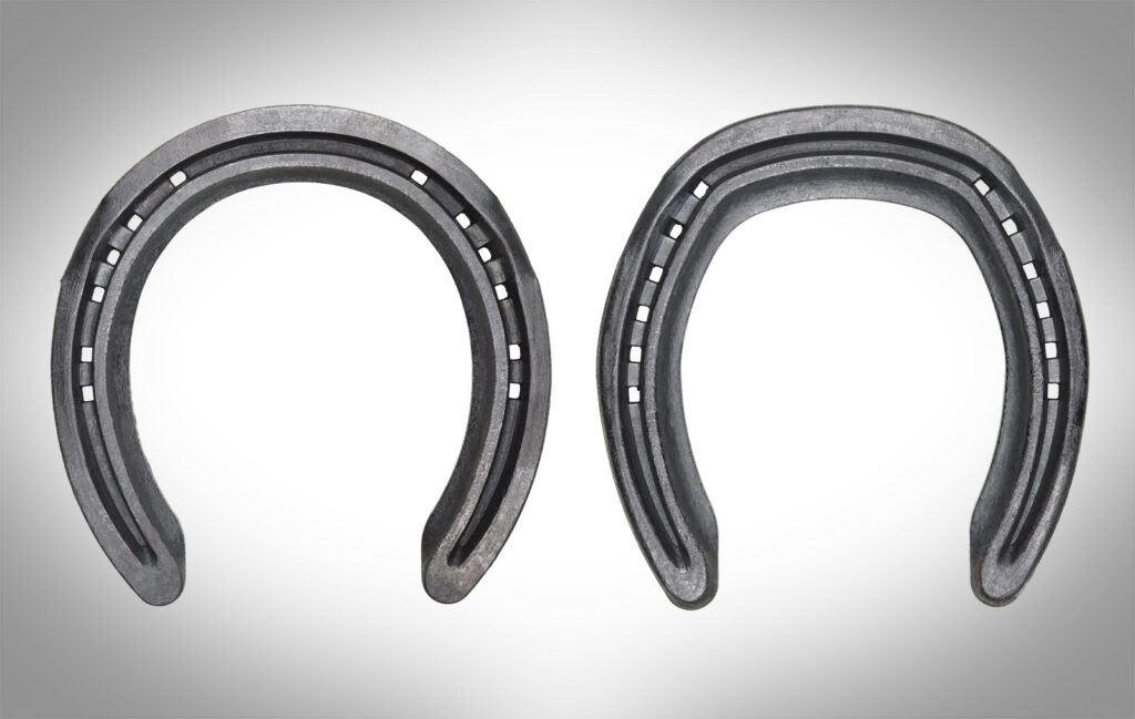 TRADITION HAS EVOLVED! Modern concave section horseshoe, with deep fullering and clear positive nail holes. Seated for sole relief with extra wide toe for strength and cover.